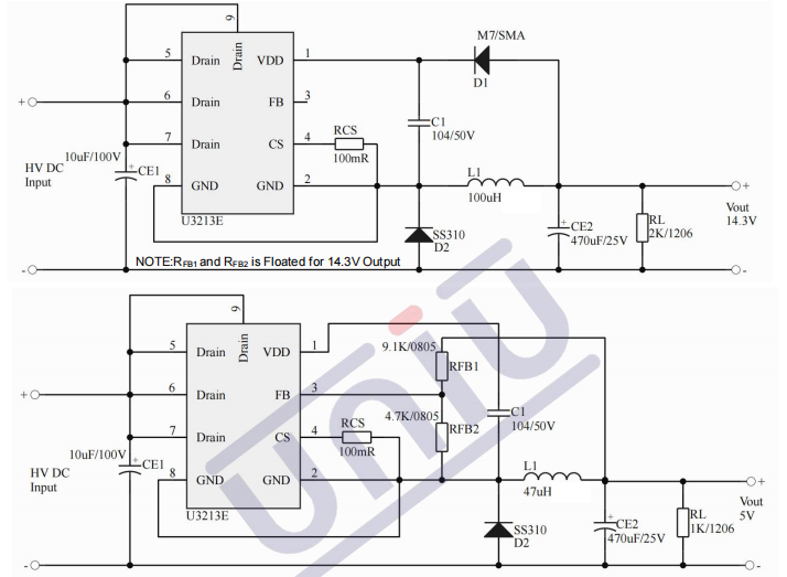 •主要特點(diǎn):集成5A 200V MOS/;集成200V高壓?jiǎn)?dòng)電路;多模式控制、無(wú)異音工作;支持降壓和升降壓拓?fù)?默認(rèn)14.3V輸出(FB腳懸空);待機(jī)功耗低于50mw;良好的線性調(diào)整率和負(fù)載調(diào)整率;集成軟啟動(dòng)電路;內(nèi)部保護(hù)功能:過(guò)載保護(hù)(OLP);逐周期電流限制(OCP);輸出過(guò)壓保護(hù)(OVP);VDD過(guò)壓、欠壓和電壓箝位保護(hù)