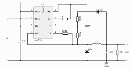 產(chǎn)品描述:U3220EC是一款高性能低成本 PWM 控制功率器,適用于離線式小功率降壓型應(yīng)用場(chǎng)合外圍電路簡(jiǎn)單、器件個(gè)數(shù)少。同時(shí)產(chǎn)品內(nèi)置高耐壓 MOSFET可提高系統(tǒng)浪涌耐受能力。與傳統(tǒng)的 PWM 控制器不同,U3220EC內(nèi)部無(wú)固定時(shí)鐘驅(qū)動(dòng) MOSFET ,系統(tǒng)開(kāi)關(guān)頻率隨負(fù)載(輕載、重載)變化可實(shí)現(xiàn)自動(dòng)調(diào)節(jié)。同時(shí)芯片采用了多模式 PWM 控制技術(shù),有效簡(jiǎn)化了外圍電路設(shè)計(jì),提升線性調(diào)整率和負(fù)載調(diào)整率并消除系統(tǒng)工作中的可聞噪音。 此外,芯片內(nèi)部峰值電流檢測(cè)閾值可跟隨實(shí)際負(fù)載情況自動(dòng)調(diào)節(jié),可以有效降低空載情況下的待機(jī)功耗。U3220EC集成有完備的帶自恢復(fù)功能的保護(hù)功能: VDD 欠壓保護(hù)、逐周期電流限制、輸出過(guò)壓保護(hù)、 過(guò)熱保護(hù)、過(guò)載保護(hù)和 VDD 過(guò)壓保護(hù)等。