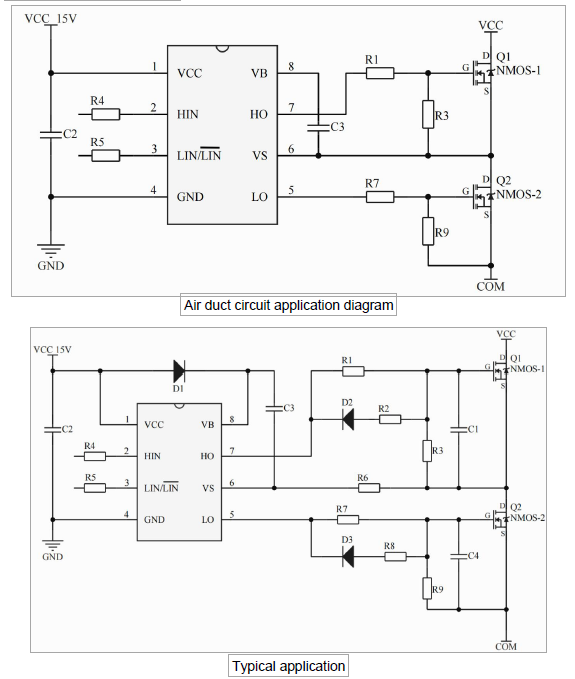 •主要特點(diǎn):集成自舉二極管;為自舉操作設(shè)計(jì)的浮動通道;完全工作到+600V;容忍負(fù)瞬態(tài)電壓;v /dt免疫;柵極驅(qū)動供電范圍從4.8到20v;欠壓鎖定;3.3V, 5V和15V輸入邏輯兼容;交叉導(dǎo)阻邏輯