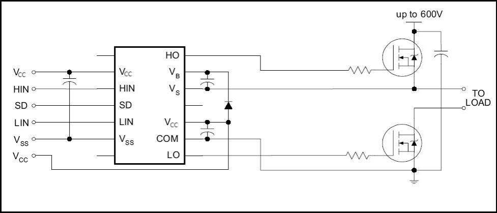 •主要特點:浮動通道設計用于引導操作;完全工作到+600V;容忍負瞬態電壓v /dt免疫;柵極驅動供電范圍從10到20V;兩個通道都有欠壓鎖定;3.3V邏輯兼容;3.3V到20V的獨立邏輯供電范圍;邏輯與電源接地+5V偏移