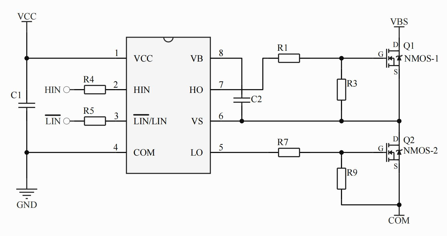 •主要特點: 集成自舉二極管(1);高端懸浮自舉設計 ; 最高工作電壓可達+300V ;負瞬態電壓承受能力;支持柵極驅動電壓從9 到 20V;VCC /VBS欠壓保護 (UVLO) ;兼容3.3V, 5V輸入邏輯 ; 內置直通防止和死區時間 ; 芯片傳輸延時特性